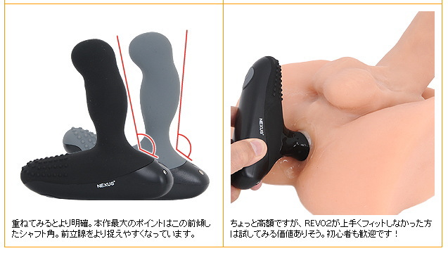 この前傾シャフト…アナラーお馴染みのエネマグラで例えるなら、REVO2が「ドルフィン」、本作は「EX」という感じ。より深く前立腺にフィットし、グリグリとハードに圧迫してくれる設計といえるでしょう。